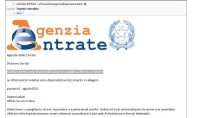 Si tratta di e-mail non inviate dall’Agenzia delle Entrate, che cercano di trarre in inganno i cittadini inoltrando file malevoli che possono danneggiare il computer o, peggio, sottrarre informazioni personali.