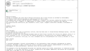 Con le mail in questione, utilizzando un testo verosimilmente copiato da una reale comunicazione del corriere Bartolini, si trasmette copia di una ipotetica fattura elettronica inviata al Sistema di Interscambio dell’Agenzia delle Entrate.
